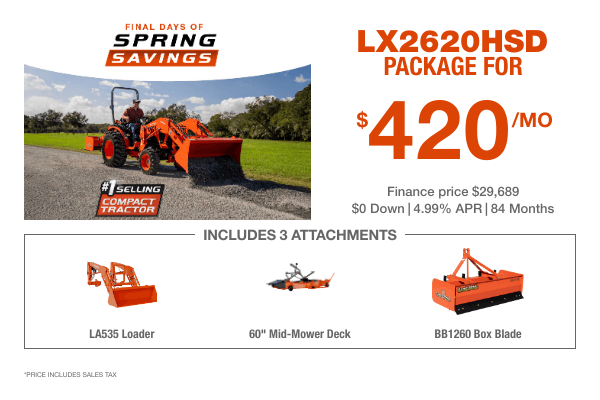 TAKE ADVANTAGE OF OUR EXCLUSIVE OFFERS ON SELECT KUBOTA PRODUCTS.
